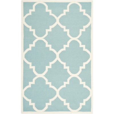 Dhurries DHU637 Hand Woven Area Rug - Light Blue/Ivory - 5'x8' - Safavieh.