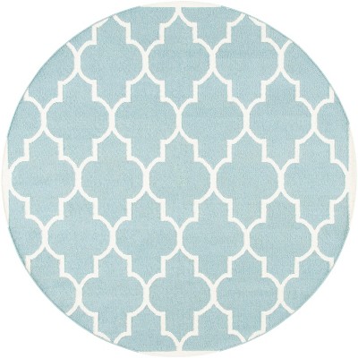 Dhurries DHU637 Hand Woven Area Rug - Light Blue/Ivory - 6' Round - Safavieh.