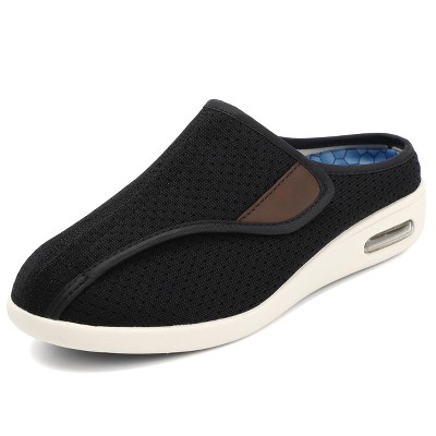 - Features: Wide width design with adjustable closure for a comfortable fit. Lightweight construction ideal for swollen feet. Cushioned soles provide extra comfort for walking.