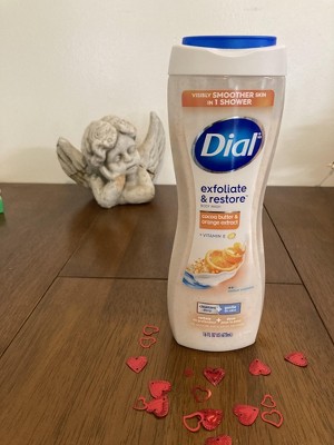 Dial® Exfoliate & Restore™ Cocoa Butter & Orange Extract body wash. Buff and polish dull, uneven skin to reveal visibly smoother skin in one shower. This carefully crafted formula contains rich cocoa butter and vitamin E. Use daily to gently exfoliate the skin. Dial® exfoliate & restore™ cleanses deep while being gentle on your skin, leaving it feeling soft & healthy. Dermatologist tested & approved under the Leaping Bunny cruelty free program. This package contains 16 fluid ounces of Dial body wash.