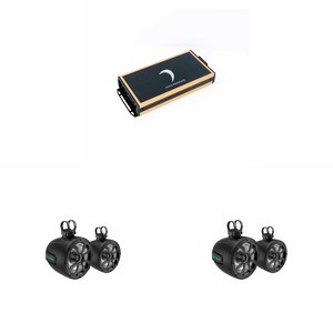 This bundle includes a Diamond Audio MICRO84U Microbu 4-Channel amplifier, delivering 125W x 4 @ 2-Ohm power and 85W x 4 @ 4-Ohm, 250W x 2 @ 4-Ohm Rms Bridged with all-weather application, along with 2x Diamond Audio POD8F4B Diamond Motorsport 8" Speaker Pod in Black. The MICRO8U series amplifiers offer increased power and performance, designed for all-weather applications and outdoor environments. With dimensions of 9.1” x 4.1” x 1.46”, they provide 250W x 2 @ 4Ω RMS bridged power, 125W x 4 @ 2Ω, and 85W x 4 @ 4Ω, featuring selectable input modes, a frequency response of 10-33KHz, and more. The Diamond Motorsport 8" Speaker Pods, featuring 1” tweeter titanium dome, 175W RMS/350W MAX power handling, and IP65 marine grade compliance, are built to withstand marine environments with UV-treated ASA high-impact thermoplastic construction. These speaker pods also include RGB LED lighting for customizable ambiance. Upgrade your audio system with this powerful and durable bundle for exceptional sound quality whether indoors or outdoors.