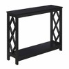 Ready to transform your living room decor? With the Diamond Console Table by Breighton Home, the transformation is inevitable. The noteworthy design combining a clean line silhouette with stunning diamond cut outs that adorn each of the frames is a chic contemporary piece of art. As beautiful as this piece may be, it does not fall short on functionality. Features two ample shelves for all your favorite collectibles or entryway essentials. Crafted from particle board that is finished with a rich melamine veneer and non lead based paint, the shelves are easy to clean. Frames and legs are made from MDF that is finished with a non lead based, making them sturdy and long lasting. The limitless versatility allows you to place this two tier unit anywhere in your home, from your entryway to your den. Witness as this accent piece revitalizes your decor today and enjoy its simple assembly that is worth every step! Need the whole collection? You are in luck, as the Diamond Collection offers all must have pieces for your home. From console tables to end tables, it has it all. Available in multiple finishes to ensure the right fit for you. Each piece sold separately.