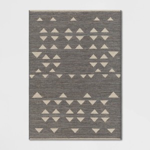 A: Hello Ali - Thank you for your interest on - 5'x7' Diamond Outdoor Rug Charcoal Gray/White. The 5′×7′ rug measures 60"x84" when rounded to whole inches. Hope this helps. - Rose