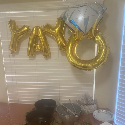 Say 'I Do' to great party decor when you add this Diamond Ring Foil Balloon from Spritz™ to your collection. This gold foil balloon is shaped just like an engagement ring with an enormous diamond on top, taking your party decoration to the next level and giving you a great option for engagement parties, bridal showers and more. The balloon comes with an included string and inflating straw for easy use - just pair it with coordinating foil balloons and ribbons for a fun setting you and your guests are sure to appreciate.
