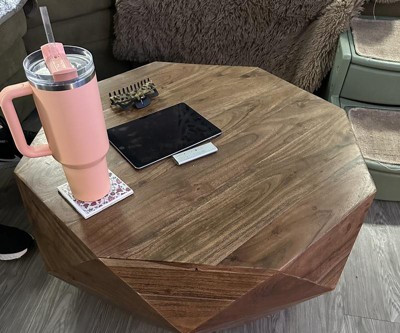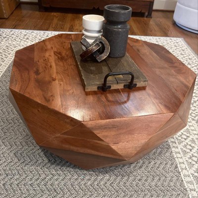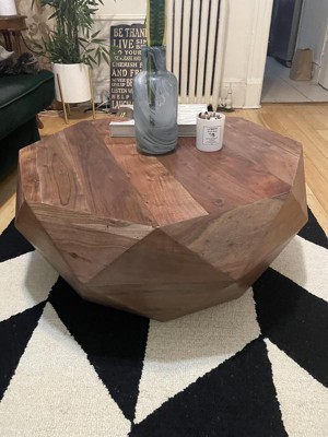 Diamond Shape Acacia Wood Coffee Table with Smooth Top Dark Brown - The Urban Port: Octagonal, No Assembly, Sturdy Base