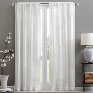 Madison Park’s Irina Diamond Sheer Window Curtain provides an alluring update to your home. An elegant diamond pattern is beautifully embroidered on a soft sheer fabric, adding grace and charm to your décor. The neutral colors and light fabric helps create a delicate look to soften any room. Hang this sheer window curtain using the rod pocket for a simple finish. Fits up to a 1.25" diameter rod.