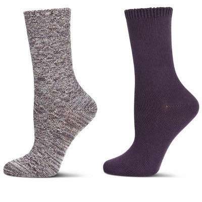 Sparkle at every step in these cozy women's crew socks. They're cotton-rich for supreme softness, with spandex for flexible stretch. One pair comes in a thick marled knit with a distinctive diamond pattern. The other pair features fine-gauge ribbing for a stylishly classic look. Both pairs are laced with Lurex for a hint of glamorous glow.