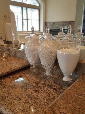 The Diamond Star Glass Apothecary Jar with Lid adds elegance to your home decor whether it's displayed empty or filled with seaside finds. This glass apothecary jar also works well as a candy buffet jar.