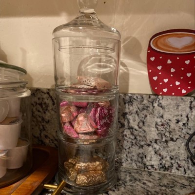 The Diamond Star Three Part Glass Bowl Tower with Lid adds luster to your home decor whether it's displaying seaside finds, colorful candy or vase filler, or used as bathroom or kitchen storage.