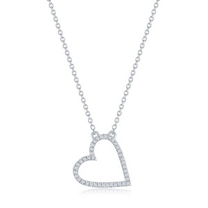 Diamonds D'Argento Sterling Silver, Open Heart Diamond Necklace - (40 Stones) - Silver - 16+2 Inch - 1 of 3