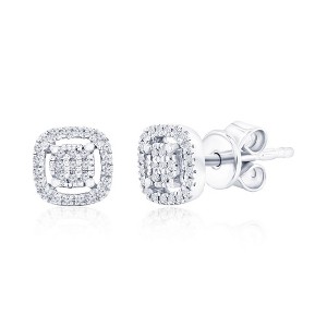 Diamonds D'Argento Sterling Silver, Square Halo Diamond Studs - (58 Stones) - Silver - 1 of 2