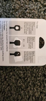 I received this brush as a member of the #heybullseye program @target, in exchange for my honest review! When I received this brush, i immediately knew there was more than one use for it! We do buy the "tubs" of diaper cream, but we also have a lil guy with severe eczema that we us hydrocortisone cream on, in the tub! Weve been using a wooden tongue depresser but it gets soooo icky, we go thru them like crazy! This is THE perfect item! Its smooth, can withstand being rinsed off and washed with soap, etc! Im so excited! It has a cool little suction cup on the bottom that keeps it upright on the vanity to keep it clean! I love it! Would highly recommend for butt cream and body creams! I think adults would find this equally helpful! Keeps your creams clean without a lot of waste, keeps your fingers out of it and its so easy to clean!