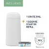 - Long lasting refill – includes a starter square refill that can hold up to 165 newborn-sized diapers and is compatible with our Diaper Genie Jumbo square refill that can hold up to 810 newborn-sized diapers.