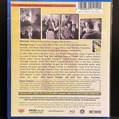 VCI has released the four RKO Dick Tracy films together on Blu-ray in a 2-disc set. This wonderful release includes a mix of new special features and older extras that were found on VCI’s DVD release from 2008._____Blu-ray video and audio quality: The disc case artwork touts, “Restored In 4K From The Original Film Negatives.” Dick Tracy's Dilemma looks the best - a really nice image that’s fairly sharp with some fine detail. The other three are a little softer, but still look good. There appears to be some careful filtering done as the image on all four titles is incredibly clean and practically spotless. Overall, I’m pleased with the video quality as this is probably the best these titles have ever looked on physical media. The audio is presented in LPCM 2.0 Mono and sounds fine. Optional English subtitles are available._____While I don’t own VCI’s older DVD set of these Dick Tracy titles, I do own the Roan DVD set from 1999. I will hold onto that because of the different special features. But, even if you own one of those older DVD sets, this VCI Blu-ray release is an easy recommendation whether or not you’re double-dipping.