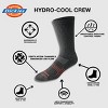 Dickies®. The #1 Selling Work Sock Brand in America. We champion the passion, pride and power of work. These crew socks provides Sweat-fighting HYDRO-COOL™ that keeps feet cooler and drier all-day. High density half cushioned footbed provides non-bulky comfort in boots and shoes while ventilation channels enhance air flow.The reinforced heel & toe provides durability.