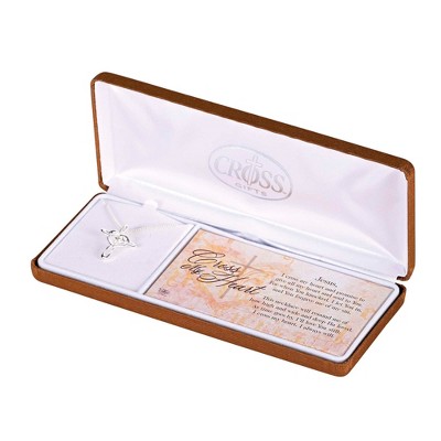 Dicksons Give Thanks Grateful Glad Heart Classic Box Cross Pendant Women's 18 Inch Silver Plated Stainless Steel Everyday Necklace in Jewelry Box