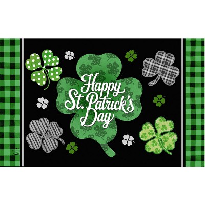 Dicksons Magnolia Garden Happy St Patrick's Day Green Plaid 22 x 10 Inch Poly Rubber Doormat Insert