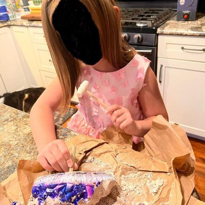 I bought this for my 6 year old for Christmas. She said it was her favorite gift, and she even received a VERY pricey ride on unicorn from “Santa”, but this had her attention all of Christmas Day until it was finished. Yes, it’s messy, but who cares if your child is excited about learning? It’s literally just plaster of Paris, which cleans up with water. We put down butcher paper and were able to move it when she took breaks. The kit had every piece it was supposed to and there was a sheet that had info about each gem we found. This would also be a great outdoor activity in warmer weather. She liked it so much I’m looking for similar kits so she can dig up some different treasures. Some people said they didn’t get all the gems, but some were smallish (because obviously big ones would be expensive), so if you were breaking off large chunks without being thorough, you could conceivably miss some. Sidenote: The adults also had fun taking turns with this.