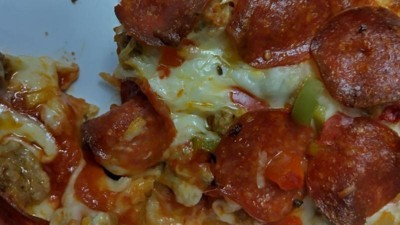 [This review was collected as part of a promotion.] I'm not usually a fan of a supreme pizza but this one was pretty good. I love that. It's the self rising crust and that it gets really crispy around the edges. Overall, it's a pretty decent supreme pizza.