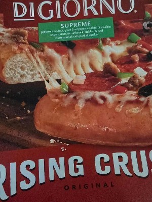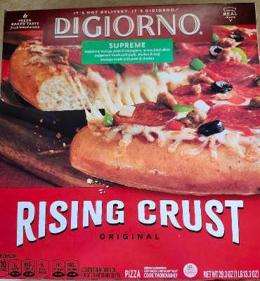 - SUPREME PIZZA DONE OUR WAY: DiGiorno Supreme Rising Crust Frozen Pizza is topped with zesty tomato sauce, mozzarella cheese, and the best supreme pizza toppings for that delivery taste right at home