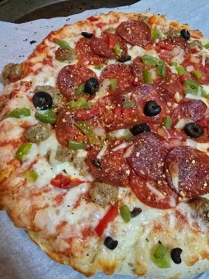 I received this item for free in exchange for my honest review. Ok, honestly I never buy supreme pizza because I don't like all the toppings, but I do like the flavor it gives the pizza, so I pick off all the stuff I don't like and this pizza didn't disappoint. Great flavor, nice crust that isn't too thick or too thin and so easy to just pop in the oven for a quick dinner. My husband ate it as is and he wants me to continue to buy them.