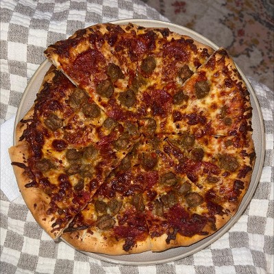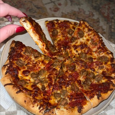 Tasty, but as the most expensive frozen pizza offered at my Target, I am surprised to see that it fits entirely on a 10in dinner plate. I wouldn’t see this feeding four people as the box suggests. Good amount of toppings and crispy thin crust.