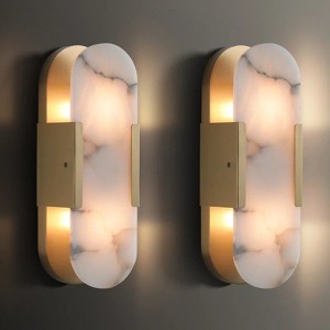 Made of imported alabaster, this wall lamp has a unique natural texture and translucent milky white color, emitting a soft glow and creating a warm and comfortable atmosphere. The durable alabaster material has excellent heat and impact resistance, ensuring long-term safe and stable use. Its luxurious appearance, combined with hand-carved and polished craftsmanship, enhances the elegance and sophistication of any space. This wall lamp is suitable for various home environments such as living rooms, bedrooms and dining rooms, and can be perfectly integrated with different interior design styles. It is not just a lighting fixture, but also a work of art, a perfect combination of beauty and function.