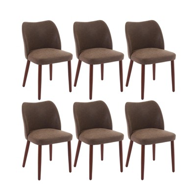 Dining Chair Set of 2, Leather Upholstered Dining Chair with Wood Legs, Wing Backrest, Wooden Kitchen Chair, Kitchen Chairs with Thick Cushions