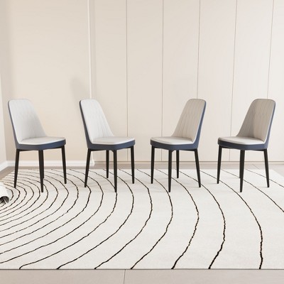 Dining Chair Set of 4, Linen Dining Chair with Solid Wood Legs, Kitchen Chairs with Thick Cushions for Dining Room, Living Room, White