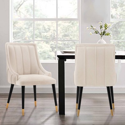 A slight Twist on a Classic look, these dining chairs offer you contoured support without sacrificing anything in style. Made from high-quality fabric over an iron frame with a wood Finish, giving you the aesthetic look of wood with the durability of metal, these chairs are designed to last you through countless dinner parties