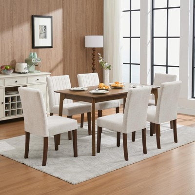 Dining Chairs Set of 2, Upholstered Modern Fabric Kitchen Side Chairs with Wood Legs, Comfortable Soft Linen for Dining Room, Restaurant, Cafe