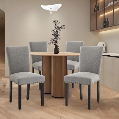 Dining Chairs Set of 2 Upholstered Parsons Dining Chairs with Nailhead Trim and Solid Wood Legs Fabric Dining Room Kitchen Side Chair