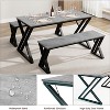 This dining table set combines modern design with practical functionality, making it an excellent choice for small homes, apartments, or studio living. The standout X-shaped metal frame not only adds a contemporary industrial touch but also provides sturdy mechanical support, ensuring the table remains stable during meals and gatherings. Its powder-coated finish protects the frame from rust, while the waterproof and stain-resistant MDF tabletop makes cleaning spills and crumbs effortless, ideal for busy households. The set includes a spacious rectangular table paired with two ergonomic benches, each able to support generous weight, providing comfort and durability whether you’re hosting family dinners, working from home, or catching up over coffee. The benches slide neatly underneath the table when not in use, helping you maximize floor space without sacrificing style or convenience—perfect for tight spaces where every inch matters. Easy to assemble with clear instructions and all necessary hardware, this set transforms your dining or workspace quickly and efficiently. Whether used as a dining table, study desk, or casual gathering spot, it adapts seamlessly to your lifestyle, offering a balance of durability, cleanliness, and space-saving design that fits naturally into your daily routine.