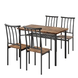 Dining Table and Chairs Set, Kitchen Table Set with Storage Rack, Square Table and Metal Chairs with Backrest, Space Saving, Brown