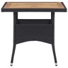 This outdoor dining table blends vintage style with modern durability, perfect for patios, gardens, or poolside hangouts. With a generous solid acacia wood top and a tough powder-coated steel frame, it looks great while being super functional, just right for fun family dinners or get-togethers on warm summer nights. Stylish Surface: The table features a sleek, oiled finish that highlights its natural grain, making it a standout piece for your outdoor space. The rich brown color pairs perfectly with the black frame, giving any dining experience a classy edge. Robust Construction: Made from top-notch materials, including UV-resistant poly rattan and solid acacia wood, this table is built to brave the elements while being super durable. The sturdy legs keep it nice and stable, so you can use it outdoors often. Generous Size: With measurements of 31.5 in by 31.5 in and a height of 29.5 in, this table can comfortably seat four people, making it just right for small gatherings or family dinners. Its square shape helps it fit nicely into different outdoor spots. Easy Maintenance: The materials used are a breeze to care for¡ªjust give it a quick wipe with a damp cloth and skip the harsh cleaners to keep it looking sharp for years. For extra weather protection, cover it when not in use. Lightweight and Portable: Built for easy handling, this dining table is light, so you can move it around your outdoor space without a bother. Whether you¡¯re firing up the BBQ or getting ready for a garden party, it¡¯s super easy to reposition.This outdoor dining table blends vintage style with modern durability, perfect for patios, gardens, or poolside hangouts. With a generous solid acacia wood top and a tough powder-coated steel frame, it looks great while being super functional, just right for fun family dinners or get-togethers on warm summer nights. Stylish Surface: The table features a sleek, oiled finish that highlights its natural grain, making it a standout piece for your outdoor space. The rich brown color pairs perfectly with the black frame, giving any dining experience a classy edge. Robust Construction: Made from top-notch materials, including UV-resistant poly rattan and solid acacia wood, this table is built to brave the elements while being super durable. The sturdy legs keep it nice and stable, so you can use it outdoors often. Generous Size: With measurements of 31.5 in by 31.5 in and a height of 29.5 in, this table can comfortably seat four people, making it just right for small gatherings or family dinners. Its square shape helps it fit nicely into different outdoor spots. Easy Maintenance: The materials used are a breeze to care for¡ªjust give it a quick wipe with a damp cloth and skip the harsh cleaners to keep it looking sharp for years. For extra weather protection, cover it when not in use. Lightweight and Portable: Built for easy handling, this dining table is light, so you can move it around your outdoor space without a bother. Whether you¡¯re firing up the BBQ or getting ready for a garden party, it¡¯s super easy to reposition.