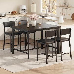 This industrial-chic 4-piece counter-height dining set features a durable 35.5" wood-grain table with metal corner guards and 4 ergonomic PU leather stools (400lb capacity each), offering space-saving storage, 300lb table stability, and tool-free assembly¡ªperfect for compact modern homes.