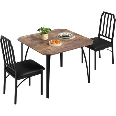 Dining Table Set for 2, Kitchen Table and Chairs for 2 with Padded Seats, 3 Piece Dining Room Table Set with Angular Design