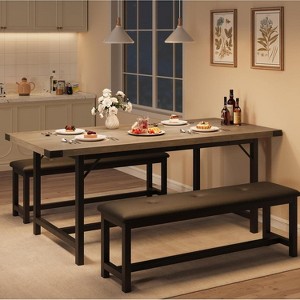 Feature:This dining set features a sturdy, thick tabletop that expands effortlessly, making it perfect for accommodating family meals or entertaining guests. Whether you're hosting a dinner party, enjoying a casual breakfast, or working from home, this versatile table adapts to your needs with ease.The accompanying benches provide comfortable seating for multiple diners and can be conveniently tucked beneath the table when not in use, helping you maximize your space. The padded benches not only enhance comfort but also add a touch of elegance to the overall design.The modern gray color adds a sophisticated touch that blends well with various decor styles.With its combination of practical design and contemporary charm, this premium expandable industrial dining table and bench set is the perfect addition to any dining room or kitchen.