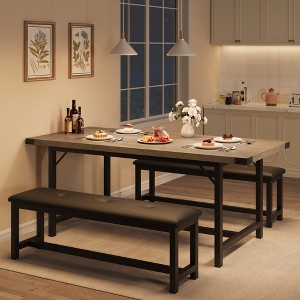 - The MDF tabletop offers a smooth surface and touch and is easy to clean. The upgraded upholstered cushions of two benches add an extra layer of comfort, elevating your overall dining experience.