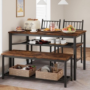 Dining Table Set for 4, Kitchen Table and 2 Chairs with Storage Bench, 47.2" Rectangular Kitchen Table Set with Wine Rack - 2 of 4Dining Table Set for 4, Kitchen Table and 2 Chairs with Storage Bench, 47.2" Rectangular Kitchen Table Set with Wine Rack - 3 of 4Dining Table Set for 4, Kitchen Table and 2 Chairs with Storage Bench, 47.2" Rectangular Kitchen Table Set with Wine Rack - 4 of 4