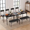 - Robust and Stylish Construction: The modern dining set features thick engineered wood and sturdy metal legs, reinforced with arched iron tubing for added stability and style. It's built to endure daily use while making a striking statement in dining area