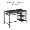 Features:This kitchen table set comfortably seats four people and features a strong iron frame, ensuring exceptional stability and weight capacity. The side of the table is equipped with a wine rack and storage shelves, which offer adjustable height and removable dividers for versatile storage. Additionally, the space under the table provides extra shelving for towels, bowls, and other items. When not in use, the stools can be neatly tucked under the table, saving space and preventing tripping hazards. This functional design makes it perfect for any dining area, especially in smaller spaces.