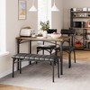 - 【Sturdy Structure】This rustic kitchen table comes with a sturdy metal frame, and the U-shaped frame at the base makes this dining table chair provide extra stability. Table supports up to 150 lbs. Benches and chairs have a weight capacity of up to 400 pounds. Excellent load-bearing capacity ensures a long service life