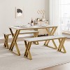 Dining Table Set for 4 with 2 Benches, X-Shaped Sturdy Metal Frame Design