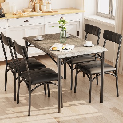 - Cozy Upholstered Chairs: Enjoy plush seating with our premium upholstered dining set featuring 4 chairs and a dining table. Crafted from high-quality MDF and reinforced steel, this sturdy set offers superior durability. Larger-diameter metal pipes enhance stability, while thick padded cushions on the dining chairs provide comfort for long, relaxing meals.