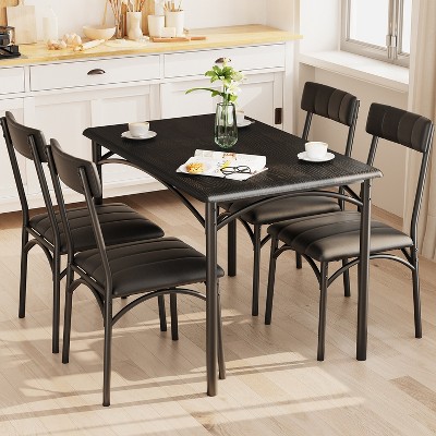 Dining Table Set for 4, Kitchen Table with Upholstered Chairs, Rectangular Wood Dining Room Table Set for Small Space, Dinner, Apartment, Home