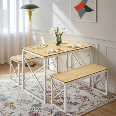 Dining Table Set for 4, Rectangle Dinner Breakfast Dinette with 2 Benches, 3 Piece, Dark Brown