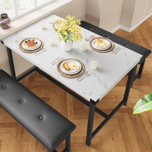 ConstrDining Table Set for 4, Retro Rectangular Kitchen Table, Kitchen Table with 2 Upholstered Benches,Space-Saving Design for Apartment, Home, Studio, the Retro Rectangular Kitchen Table Set for 4, designed to bring style and functionality to any space. ucted with 1.37-inch thick high-resilience foam and a button-tufted PU surface, this cushioned bench delivers exceptional comfort for extended sitting. It supports a weight capacity of 400 lbs, making it both cozy and sturdy.