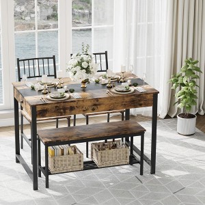 Dining Table Set for 4, Small Kitchen Table and 2 Chairs for 4 with Bench, Rectangular Farmhouse Table Set