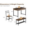 This Dining Table Set for 4 includes a spacious table, 2 cozy chairs, and a 2-seat bench. The chairs and bench can be conveniently stored underneath the table when not in use, maximizing space, making it perfect for small spaces and keeping your home tidy and organized. Perfect kitchen table size for 4 : Table dimensions: 46.5"L x 27.5"W x 30.7"H; chair capacity: 250 lbs; bench capacity: 300 lbs, making it ideal for families or as a versatile working table